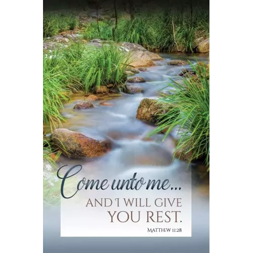 Come unto me...and I will give you rest. Matthew 11:28 Worship bulletins arrive shrink wrapped flat in 100's (8.5" x 11") with blank insides and back for printing. Works with all printers and copiers.