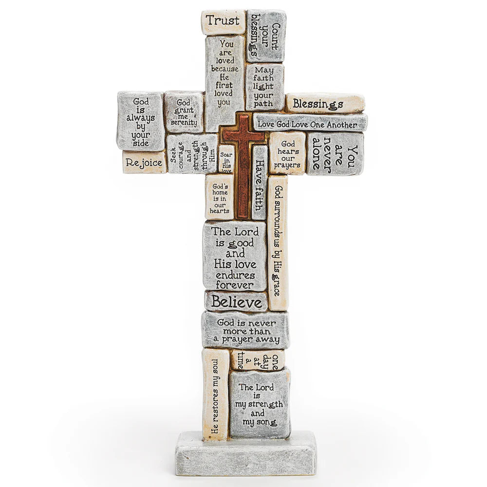 The Crossword Table Cross combines traditional religious symbolism with a creative crossword layout filled with faith-based words and uplifting phrases. With its bold design and inspiring details, it serves as a meaningful centerpiece for a tabletop, shelf, or desk. A thoughtful spiritual gift or decorative home accent, it’s a striking way to keep faith at the heart of daily life.