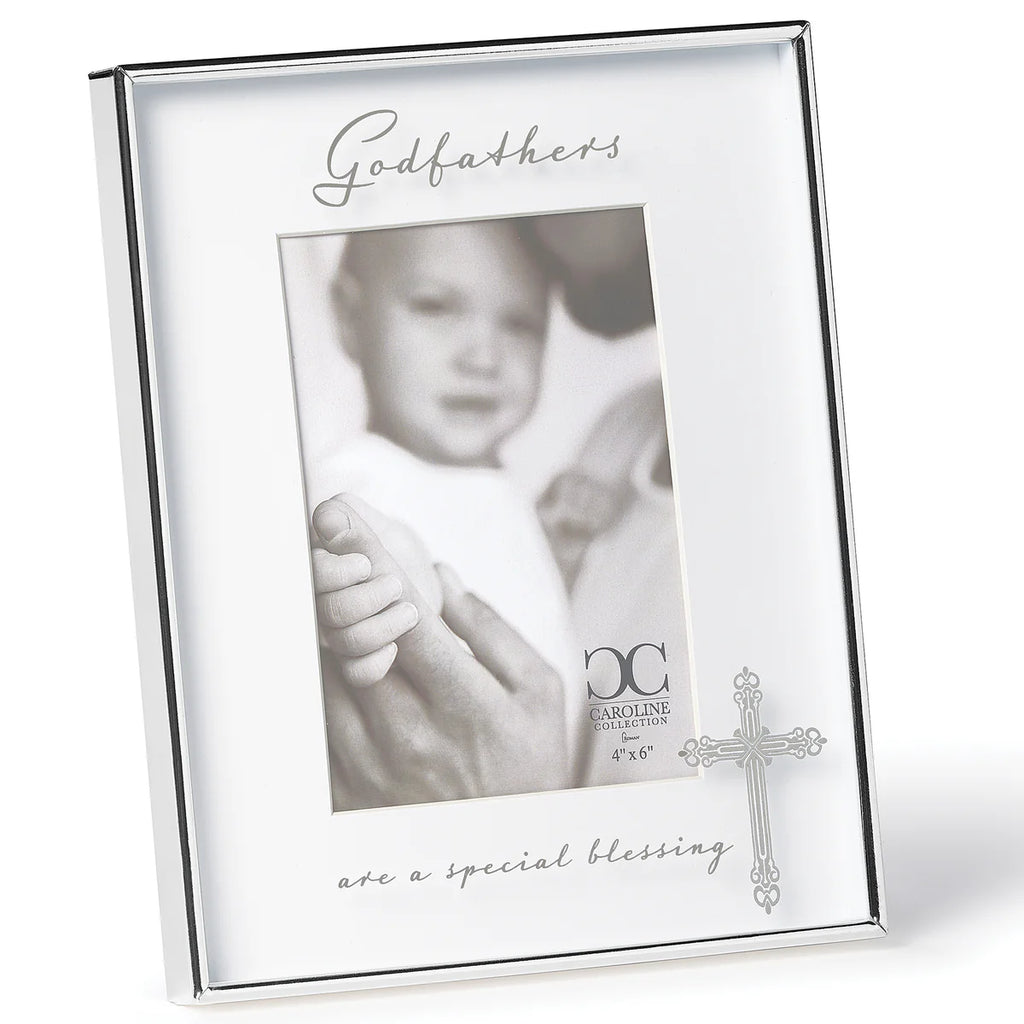 Godfather Frame is a heartfelt way to honor the guiding presence of a godfather in a child’s life. Designed with a modern glass panel and silver-tone border, it features the meaningful words “Godfathers are a special blessing” along with a delicate cross accent in the corner. The thoughtful details combine to create an elegant keepsake that celebrates both faith and the important role of a godparent.