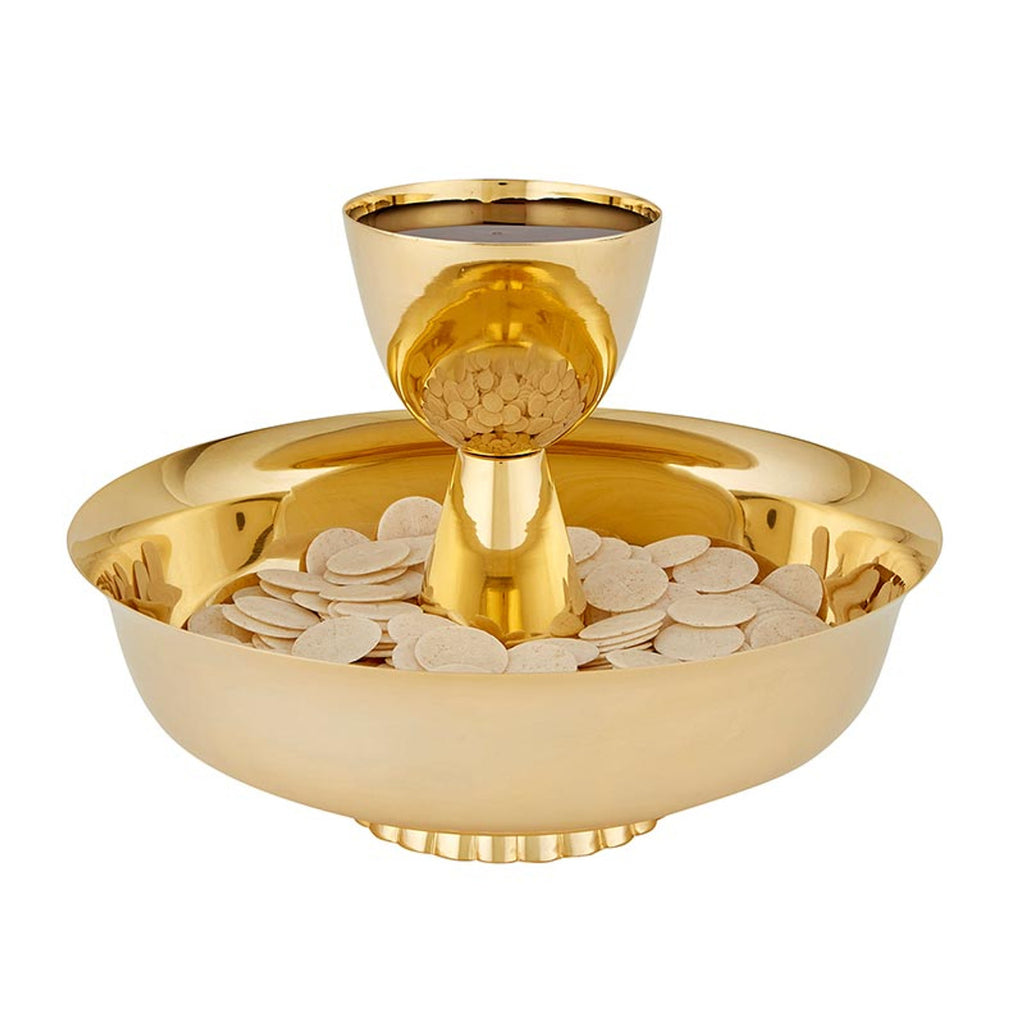 Many churches celebrate communion by intinction, or dipping the wafer into the wine, rather than drinking the wine from the chalice. These intinction sets are designed to easily hold the bread and wine to make the distribution of communion easy. Made from 100% brass then gold plated to meet the high quality standards, this intinction set includes a bowl to hold the hosts.