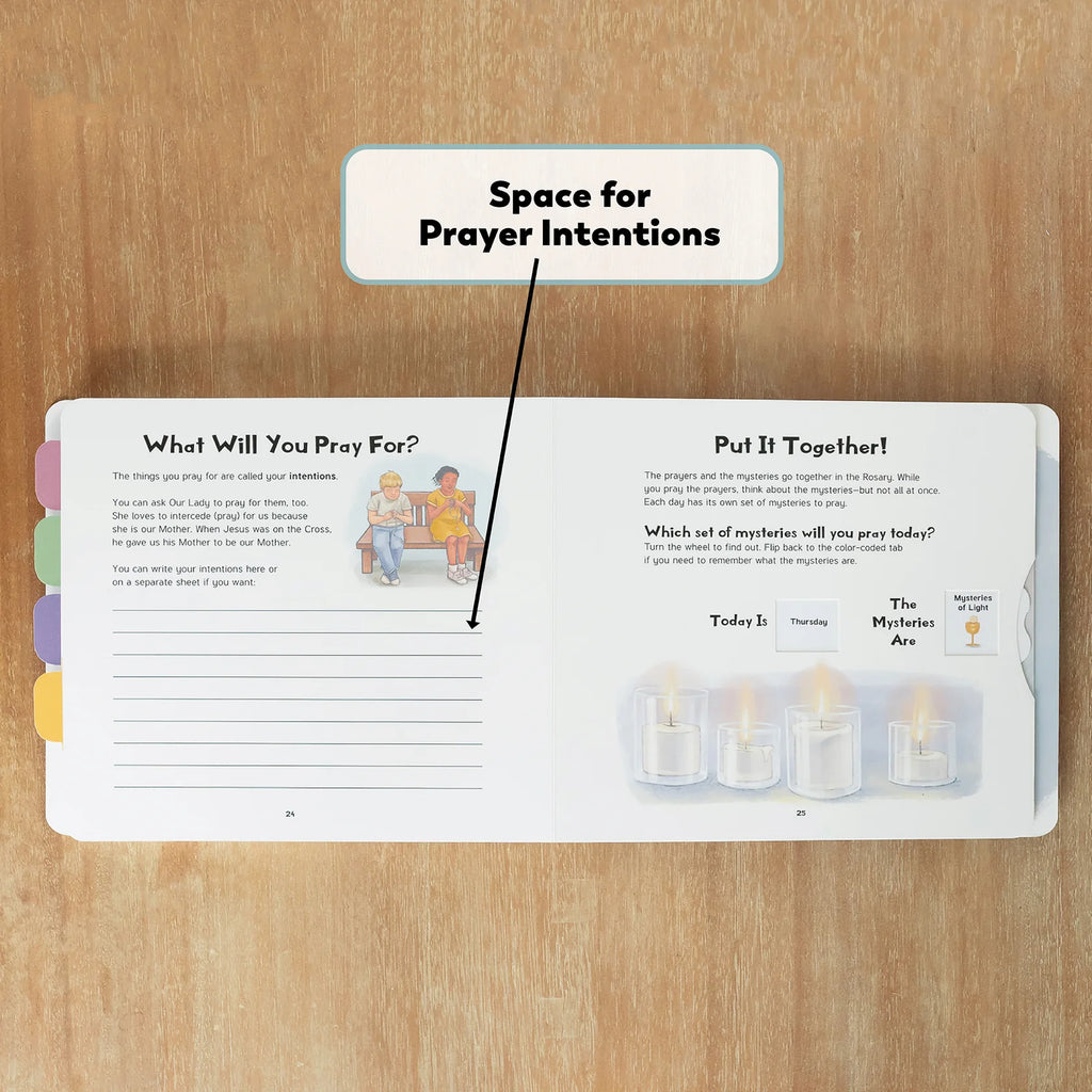 Designed with young Catholics in mind, this book uses lift-the-flaps, turning wheels, and beautiful visuals to make learning to pray the Rosary joyful, memorable, and engaging.