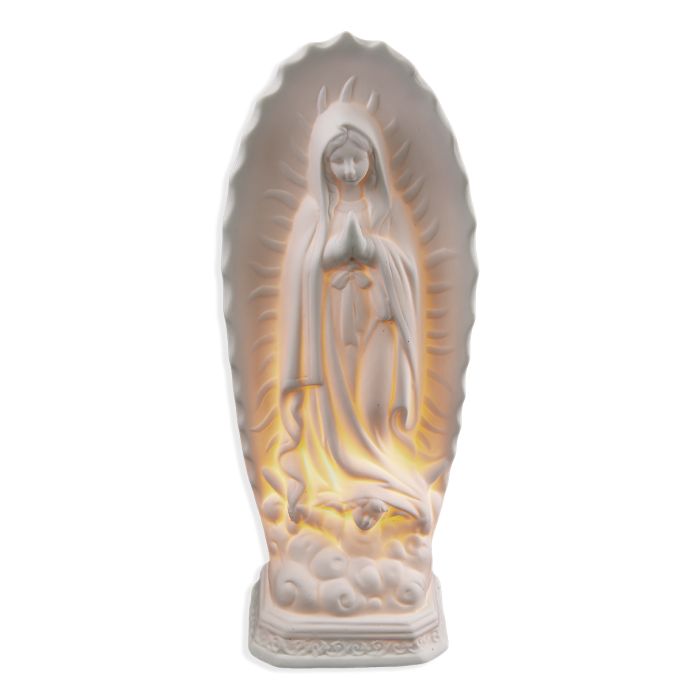 Our Lady of Guadalupe Night Light in White Porcelain Bisque.