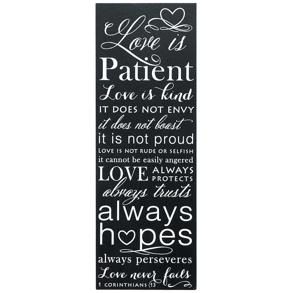 This wall plaque, with its elegant arrangement of words from 1 Corinthians 13, is an inspiring addition to any Christian home. Makes an excellent wedding gift. Plaque is about 5" x 14" and is 3/4" thick. Made of MDF, a high quality, smooth finish wood material.